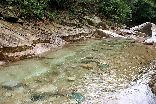- 마지막 입수 허용 구간: 울퉁불퉁한 바위가 많아 유아나 어린 아이들이 놀기에는 다소 위험할 수 있지만, 그늘이 많아 더위를 피하기에 좋습니다. 이 구간으로 가는 길에는 아름다운 산수국도 감상할 수 있어 산책하기에도 좋습니다.