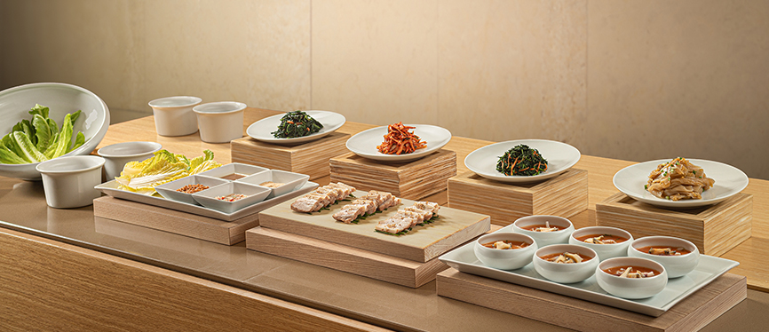 라이브 스테이션에서는 쉐프가 직접 구워내는 최상급 스테이크와 수제 파스타, 그리고 즉석에서 만드는 신선한 초밥까지 즐기실 수 있습니다. 특히 한식 명품관에서는 전통 한식의 정수를 현대적으로 재해석한 다양한 메뉴들이 준비되어 있습니다.